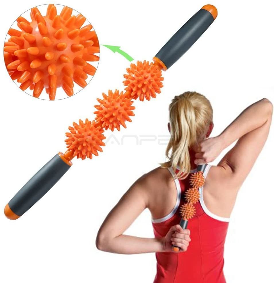 * Relieve Stress and Muscle Tightness - The handheld roller is 18-inch long with 2 grip handles on both ends and three independent massage balls. Handles include ergonomic grip for added comfort and control.
