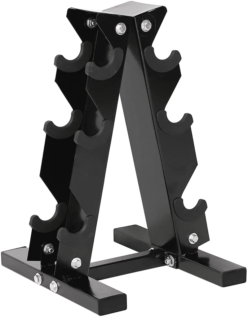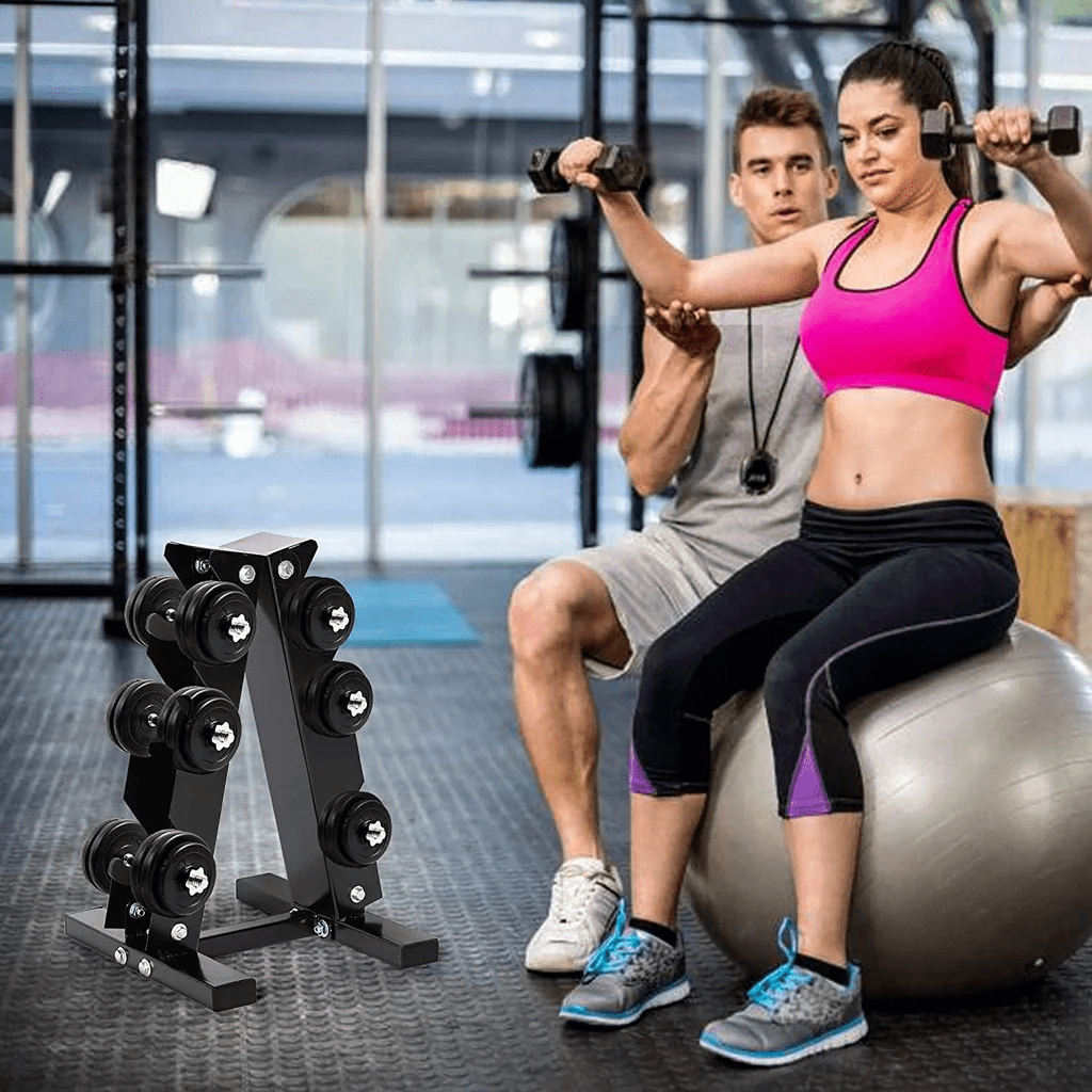 A-Frame Dumbbell Rack Stand Compact 3 Tier Free Weight Steel Dumbbell Storage Bracket for Home Gym (Black)