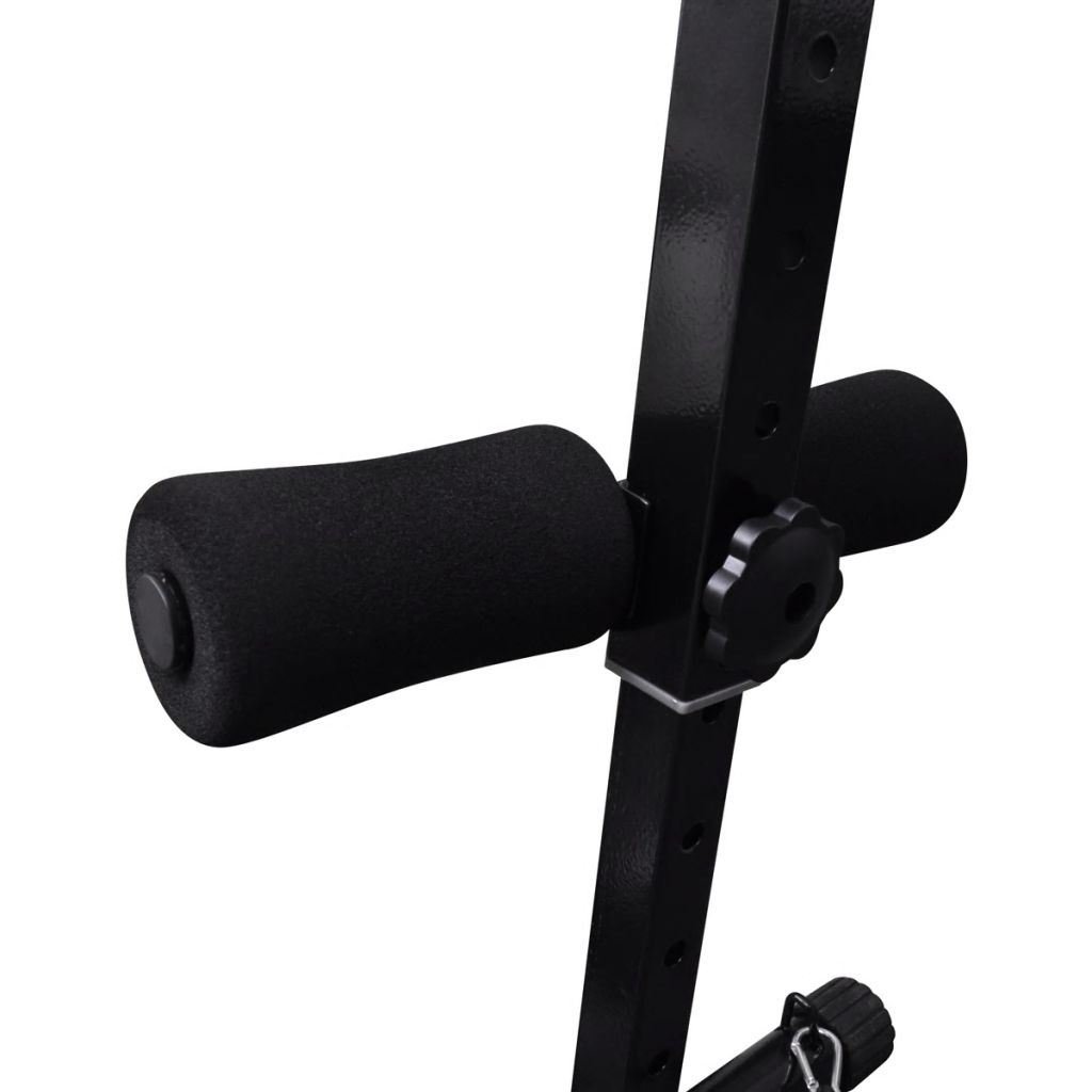 This versatile fitness workout bench allows for an effective, total body workout. The adjustable knobs on the bench provide you with a wide range of angles and heights, allowing you to customize your position. The dumbbells and training ropes also help to exercise your chest and arms.