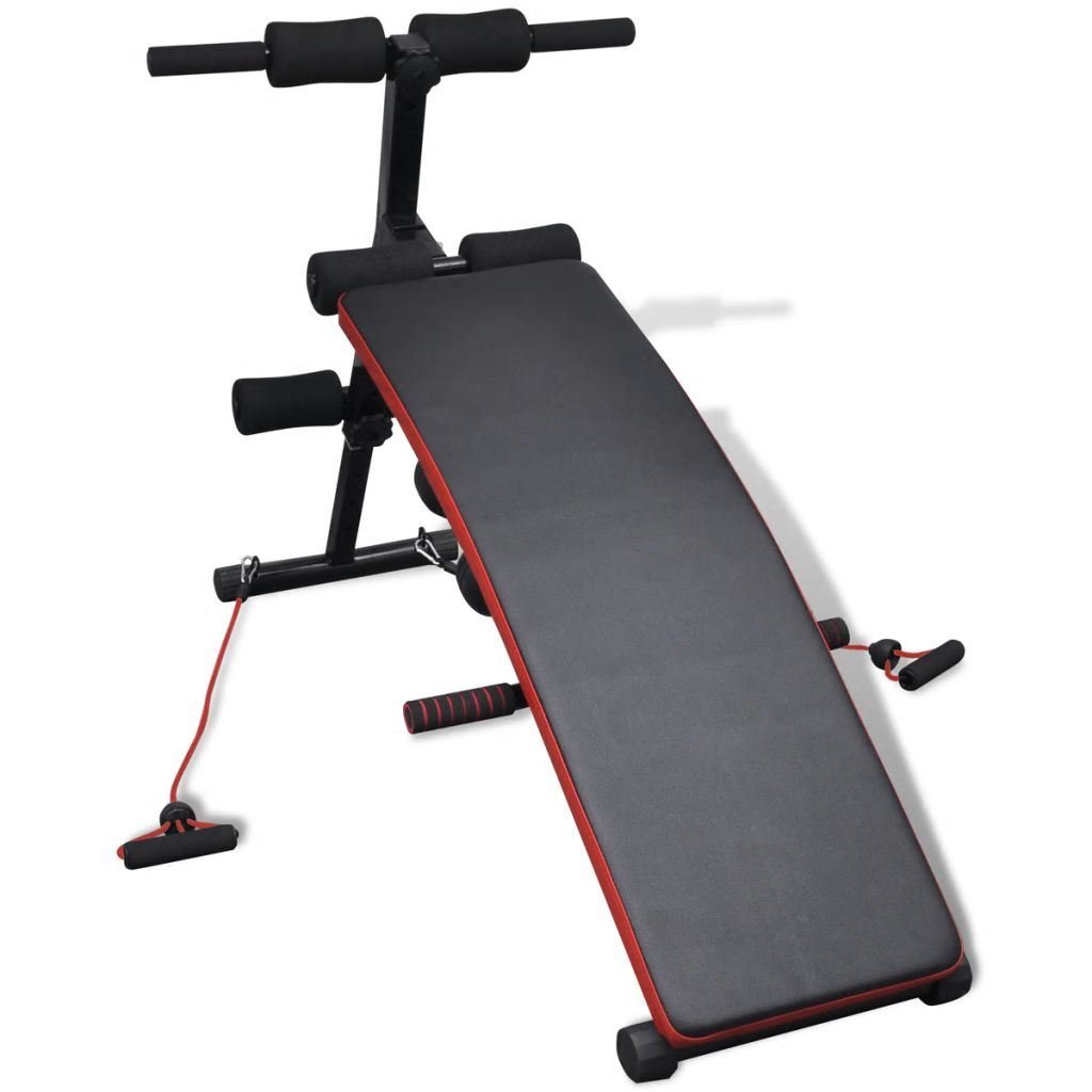 This high-quality multifunctional sit up bench, with 2 dumbbells and 2 training ropes, is great for training a wide range of muscle groups.