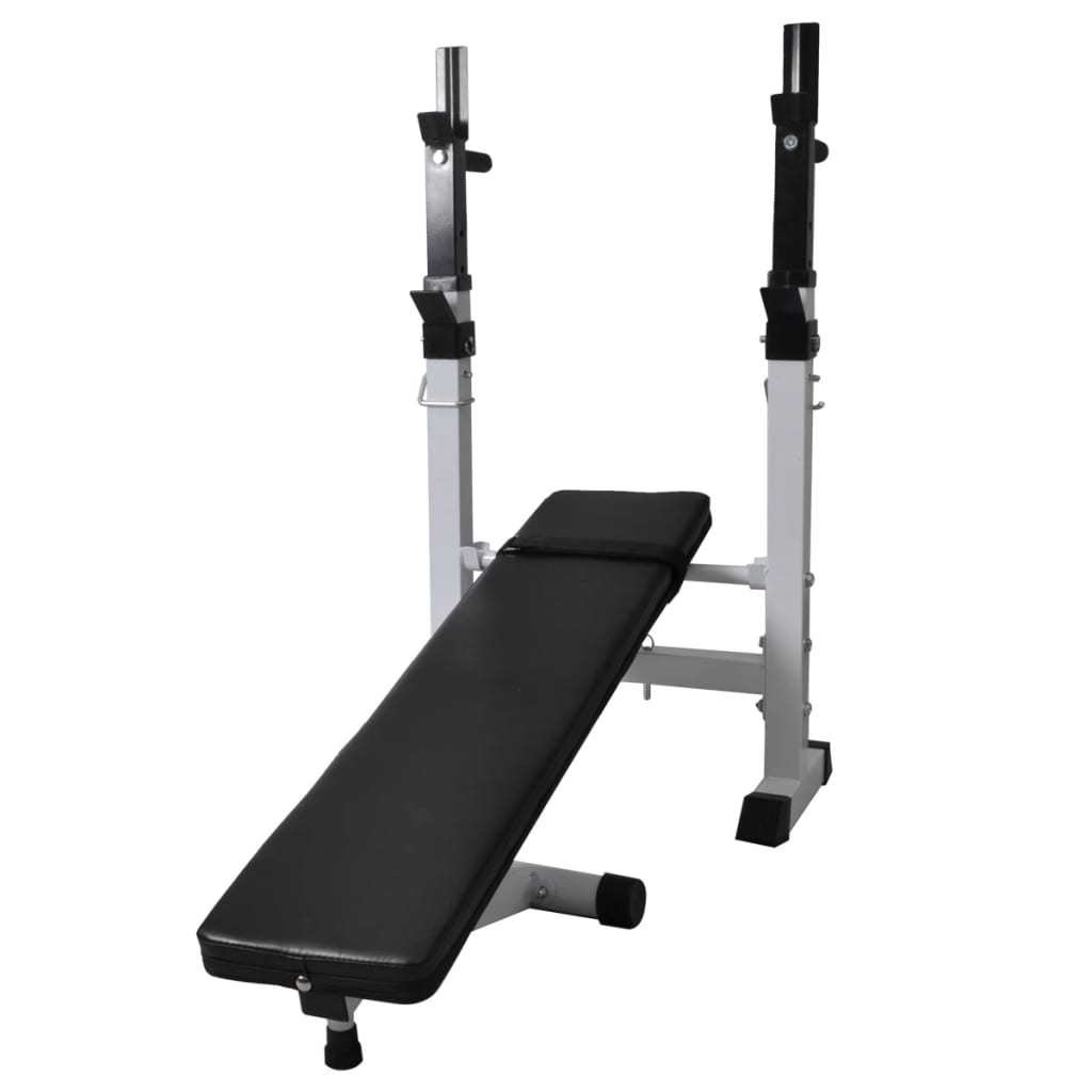 The sturdy steel construction of the bench ensures a safe workout, and the durable cotton-padded cushion keeps you comfortable.Dimensions: 3' 11" x 1' 7" x 2' 11"- 3' 7" (L x W x H) Back cushion size: 3' 7" x 9.4" x 1.6" (L x W x H)Max. user weight: 220 lb Max. barbell weight: 176 lbBar support adjustable level: 5 levels, Min. 2' 11", Max. 3' 7"Material: SteelFabric: Polyurethane: 100%