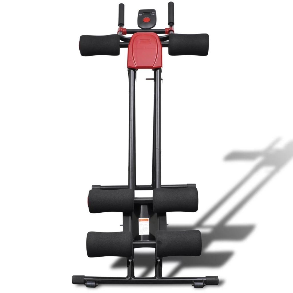 Made from high-quality steel, this multifunctional exerciser is definitely durable in use. It can be easily folded away for storage.Color: Black + redMaterial: Steel + plasticOverall folding size: 21.3" x 51.1" (L x W)Weight: 19.8 lbThe angle and height can be adjustedWith displayRequired battery: 1 AAA battery (included)