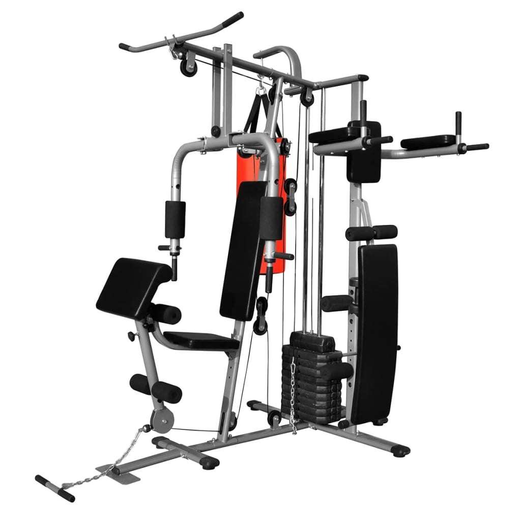 This fully-equipped multi-functional home gym; with 143.3 lb plates weight; allows you to do over 50 different exercises! It will be a great choice for getting ripped from the comfort of your own home. The all-in-one workout machine is equipped with an adjustable seat; to suit any body size; as well as a boxing bag for boxing.