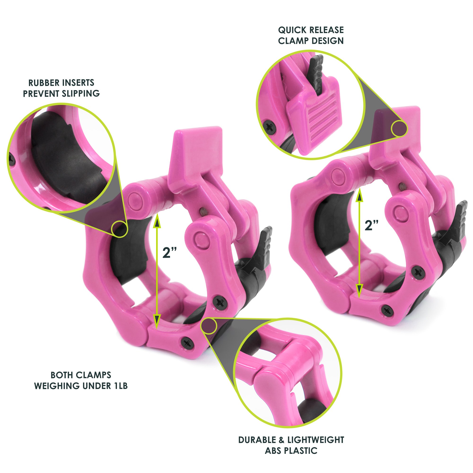 When you’re pressing a weight over your chest, squatting heavy, or explosively lifting a barbell overhead, the last thing you want to worry about is plates sliding off the bar. A barbell clamp with a snug fit is a must for serious weightlifters, and you need something that will slide on and off the bar with ease while keeping you safe. That’s why ProsourceFit Olympic Barbell Clamp Collars are the perfect solution for you! Prevent injuries and stay focused on your form with reliable weightlifting clips that keep weight plates and bumpers in place while you lift. The snap-latch design on these collars click to let you know it’s locked in place, and is so easy to unlock that you can do it with one hand - perfect when your hands are sweaty from an intense training session! Durable ABS plastic slides on and off the bar smoothly without scratching the finish, and rubber inserts help to reinforce the grip and secure lock. They’ll fit on standard 2-inch Olympic barbells, so get a pair or two to keep in your gym bag. That way, you don’t have to spend valuable time wandering the gym, trying to find the clips or waiting on someone else to finish using them. At only 5.2 oz. per clip, you’ll only add a miniscule amount to your bar, and you’ll barely notice them in your bag. It’s also ideal and convenient to have a few for home gyms– one set for the bench and one for the squat rack. These are a must-have piece of equipment for serious athletes, and perfect for squats, deadlifts, cleans, bench presses, snatches, and more.
