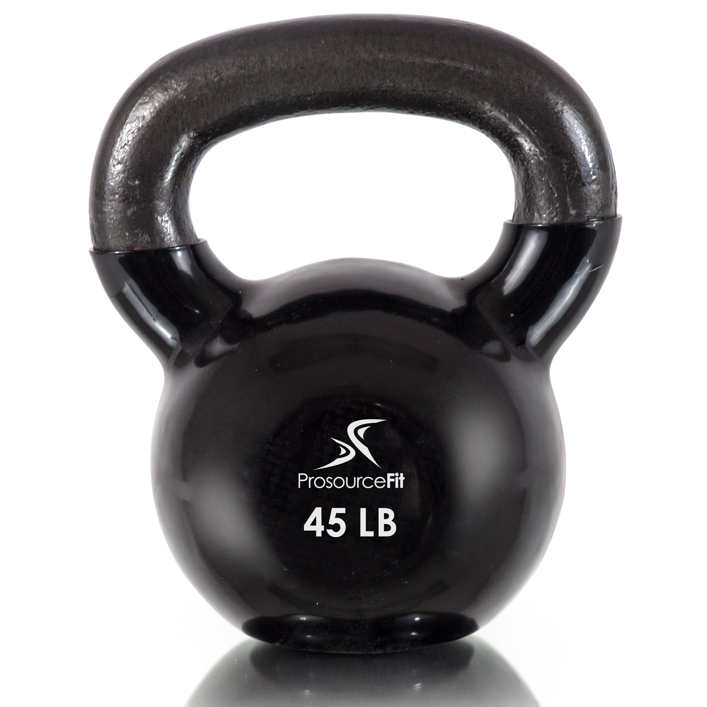 Get an amazing workout that’s effective, efficient and fun with ProsourceFit Vinyl Coated Cast Iron Kettlebells. Perfect for full body workouts and classic exercises like swings, squats, cleans, get-ups and more. Use for circuit training or as part of your regular muscle-building routine to strengthen your entire body while boosting cardio capacity and stamina. Made entirely out of cast iron and coated in vinyl, the durable design makes them ideal for both indoor and outdoor workouts. The color-coded vinyl makes it easy to distinguish weights and helps protect your floor and reduce noise. Perfect for gyms, outdoor workouts and at-home use, they make working out super convenient. Extra-large handles without seams provide a comfortable grip for both men and women. The heavy, uneven distribution of weight forces you to engage your core, improve coordination and recruit multiple muscle fibers at once. The result is a fast, effective workout that will build muscle, boost metabolism and torch calories. Plus, they will keep your workouts interesting so you can stay motivated and challenged. Available in a variety of weights, these are a must-have for both beginners and advanced athletes. The high quality, robust cast iron construction will last for years, making them a great investment.