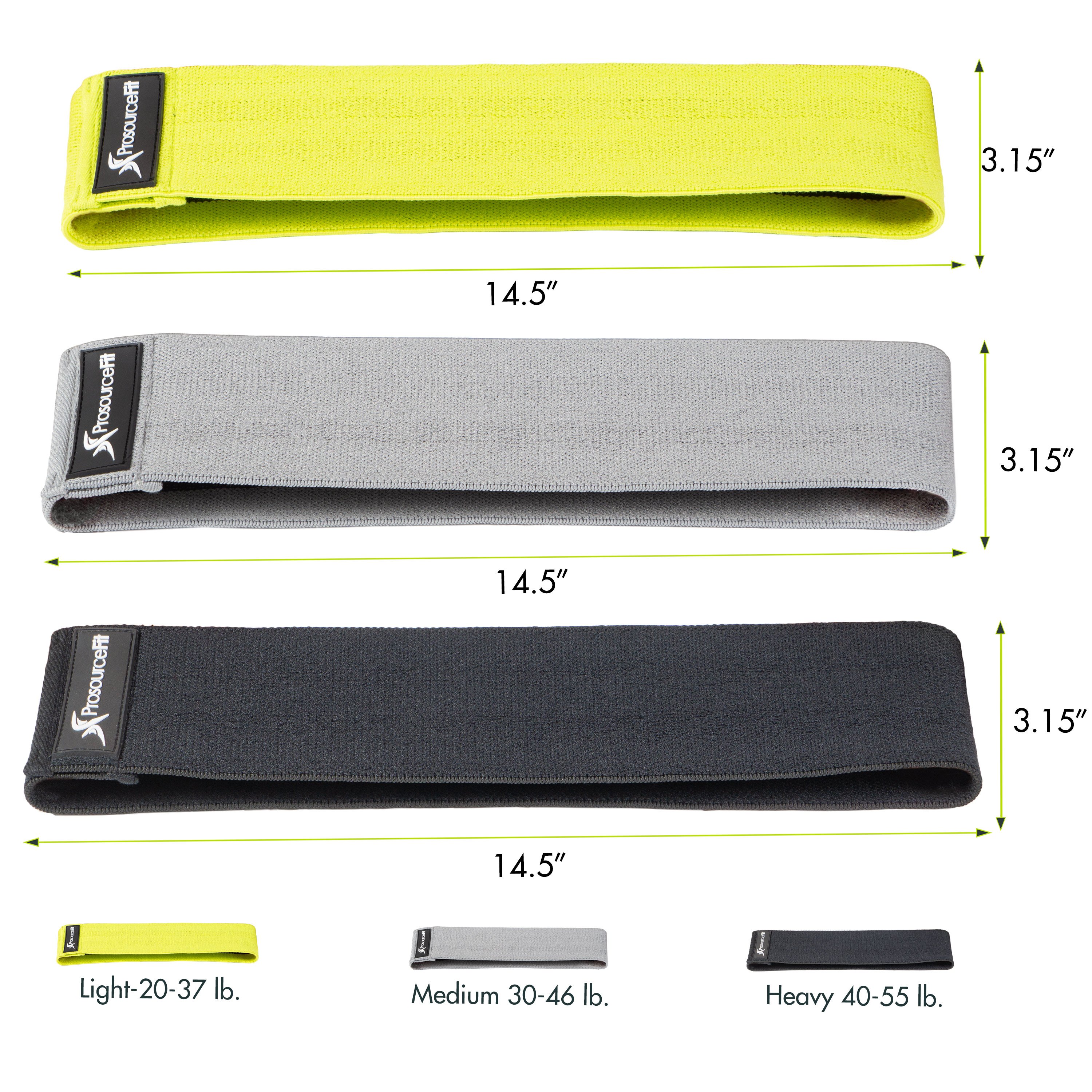 ProsourceFit Fabric Loop Resistance Bands Set solves the problem of traditional bands rolling up your legs, knees or ankles as you move. Made of soft cotton and spandex, the thick and durable fitness bands have an anti-slip interior so you can focus on shaping your body. Perform lunges, squats, step ups or hip bridges with ultimate comfort and stability. Suitable for all fitness levels, the workout bands come in a set of 3 color-coded resistance levels so you can create the training right for you: blue/green- light, pink/grey- medium, purple/black- heavy. Bring your leg, butt and hip workout with you to the office or while traveling in the convenient waterproof carrying case. Choose between 2 color sets to add style to your workout. It also doubles as an easy storage option for the home, fitting in drawers or cabinets taking up minimal space!