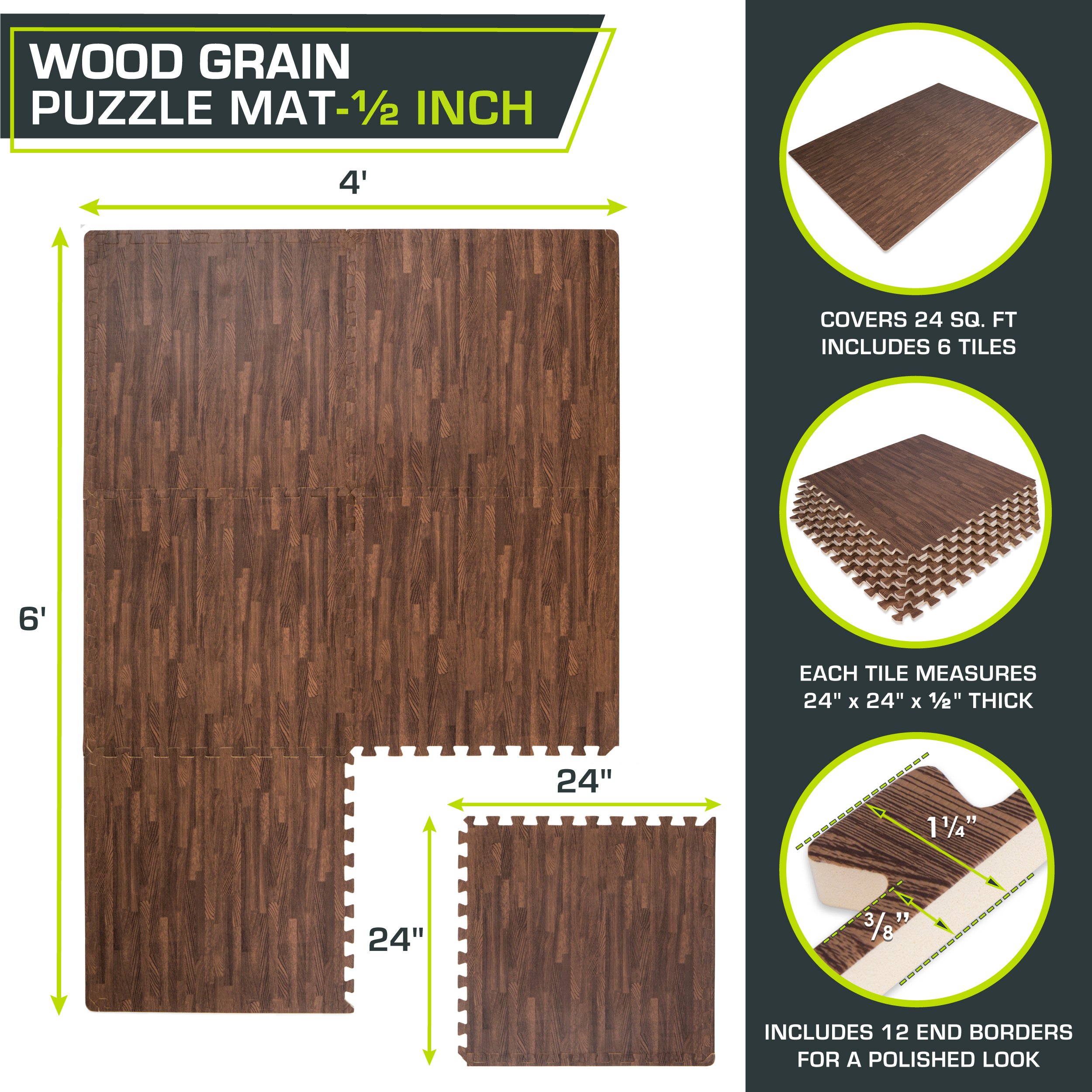Wood Grain Puzzle Mat 1/2-in