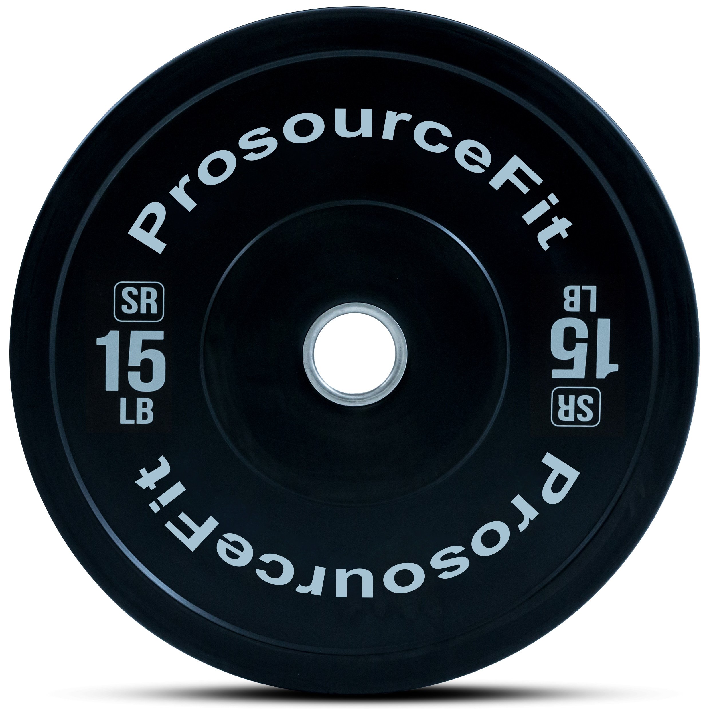 ProsourceFit Bumper Plates are built with the highest quality for use in cross-training or commercial gyms but are also perfect for garage gyms and home use. These plates offer low bounce with a durometer of 88 (+/-5), so they won’t fly around the floor when you drop them. The solid rubber design can withstand repeated drops and won't damage your floors like other plates. The narrow width of each plate allows you to fit more weight on your barbell. (Durometer measurements indicate the density of the rubber and how much a plate bounces when dropped, with 100 being hard with no bounce and 65 being softer with a lot of bounce.) CT - series The color training bumper plates have IWF competition-standard colors and markings. Plates are also calibrated to competition standards for the most accurate weights. Each plate has a diameter of 450mm and width varies from 30-72mm depending on weight. Plates have zinc steel inserts and fit barbells with two-inch sleeves. SR - series The solid rubber bumper plates have a diameter of 450mm and the width varies from 30-60mm depending on weight. Solid rubber bumper plates have stainless steel inserts and fit on 2-inch barbell sleeves.