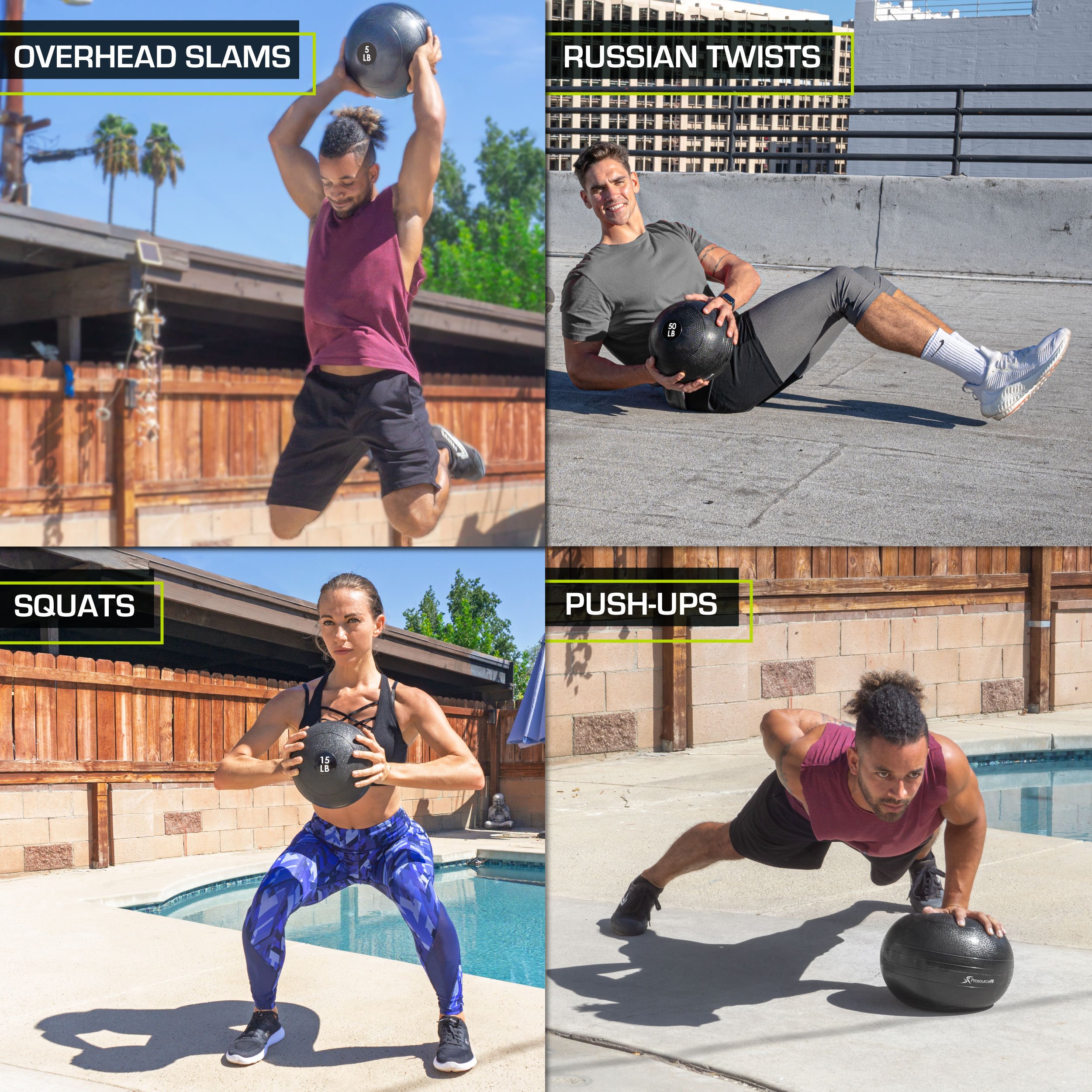 The ProsourceFit Classic Slam Medicine Balls are a fun way to boost your heart rate, get a full body workout and beat stress! A thick, durable rubber shell is built to take a beating from ball slams, wall throws, tossing with a partner and more. These explosive exercises are a great way to strengthen the core, arms, back and legs, as well as improve overall coordination. The gentle texture on the classic Slam Ball provides quality grip and is easy on hands, ideal for intense, sweaty workouts and even more traction for throwing. The sand-filled dead weight ball means there is no bounce when you throw, so you can slam as hard as you can without it flying back or rolling away. Perfect for a heart-pumping workout and stress reliever. Use this ball for powerful, dynamic exercises like overhead slams, rotational wall throws and wall balls. Or use in place of weights for muscle-building exercises like Russian twists, squats, lunges, overhead presses and more. Fitness weight balls come in various weights, making them perfect for beginners and advanced athletes alike. Use weighted fitness balls in your home gym, athletic training facilities, or outdoors for a slammin’ workout!