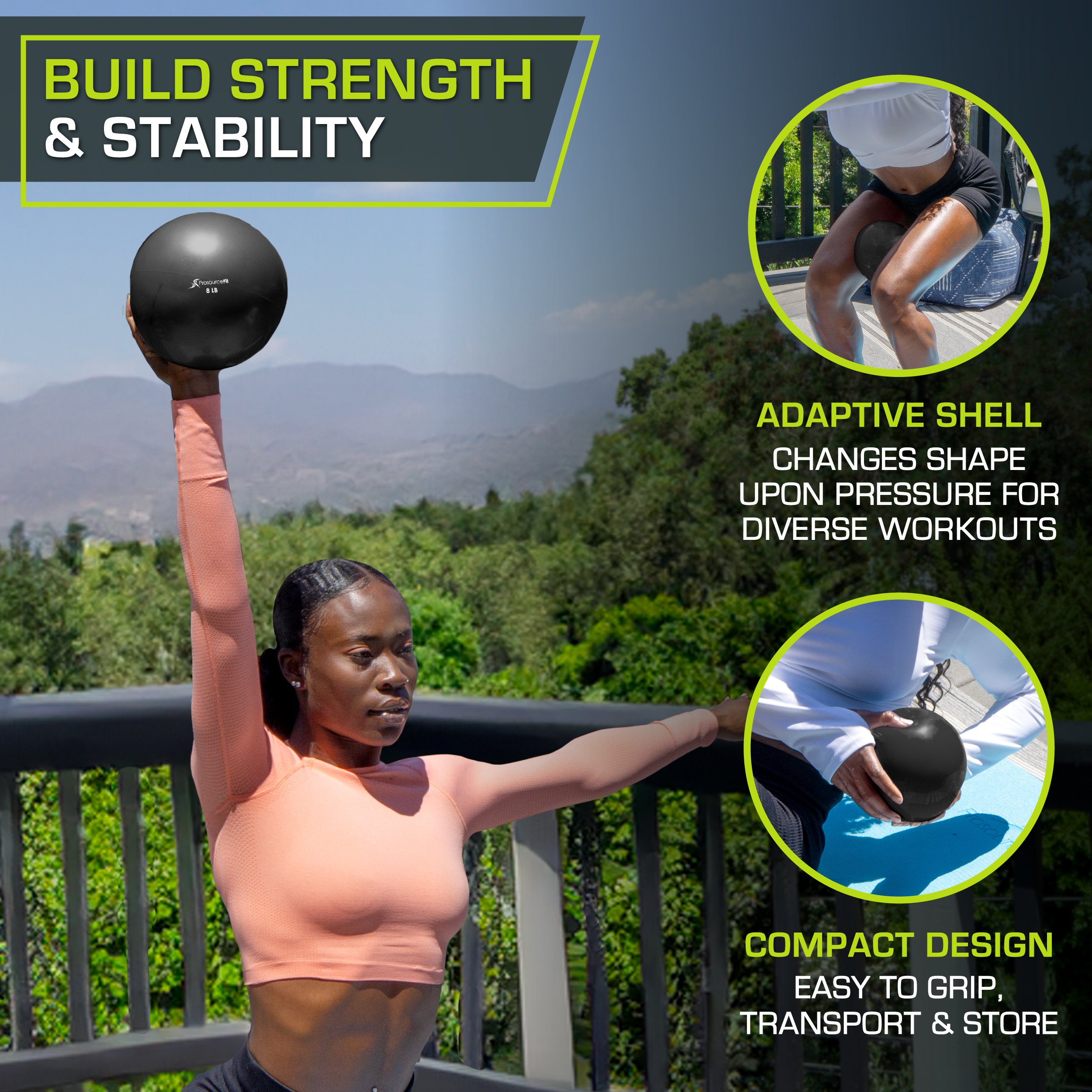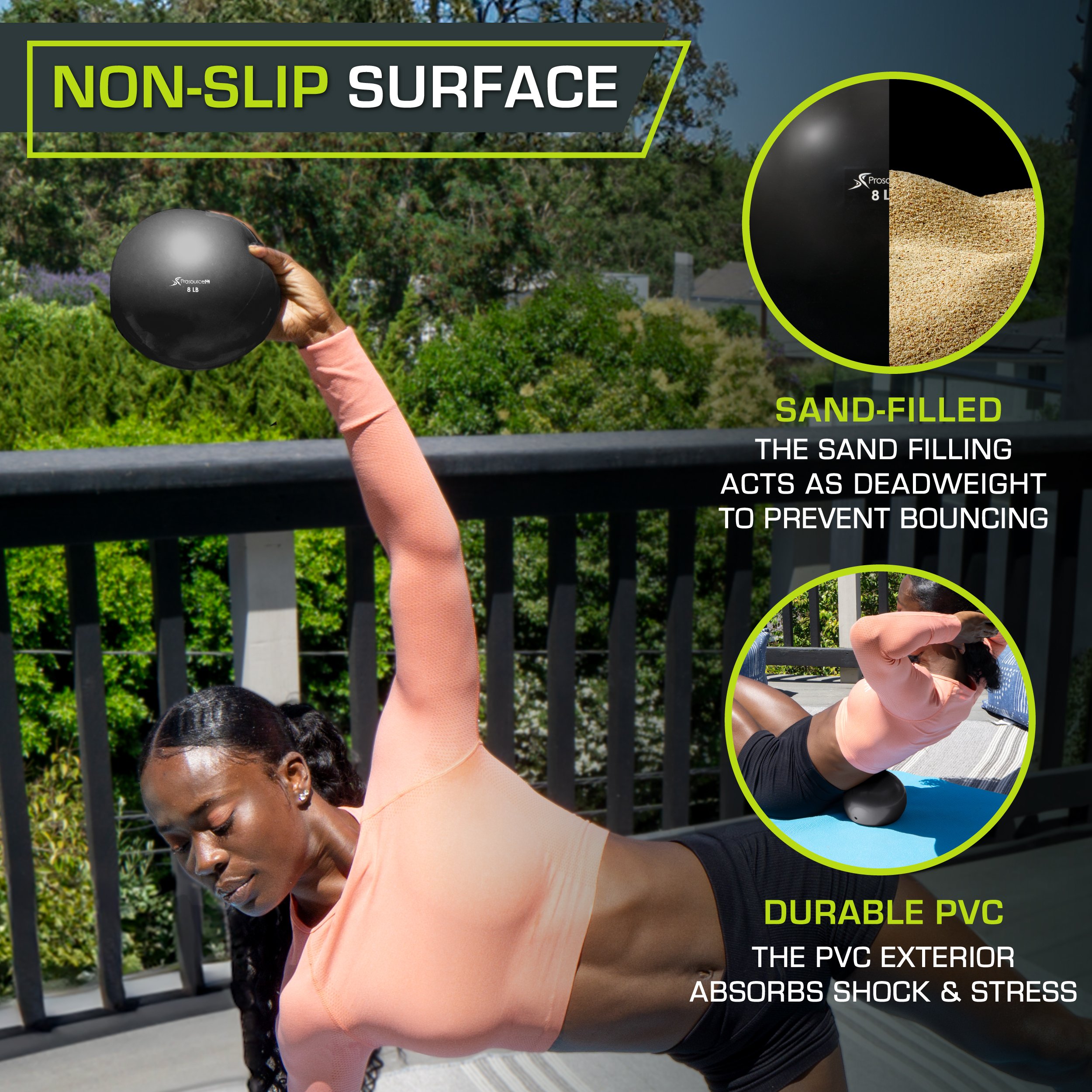 ProsourceFit Toning Balls are the perfect combination of building strength and improving flexibility, bringing the benefits of Pilates into regular workouts. The unique design of these PVC mini balls creates a more comprehensive workout experience and doubles as a physical therapy tool. Use these mini weighted balls during strength training exercises, lean against it during core work for back and spine support or use as a destabilizing surface and weight. These natural sand filled exercise balls create instability during exercises for maximum challenge, engaging various muscle groups at once to help you get a leaner and more toned body. Fitting perfectly in the palm of your hands, between ankles, thighs or hamstrings, these weighted toning ball make targeted strength training easier and more effective. Choose the right level of resistance for you to start shaping and sculpting!