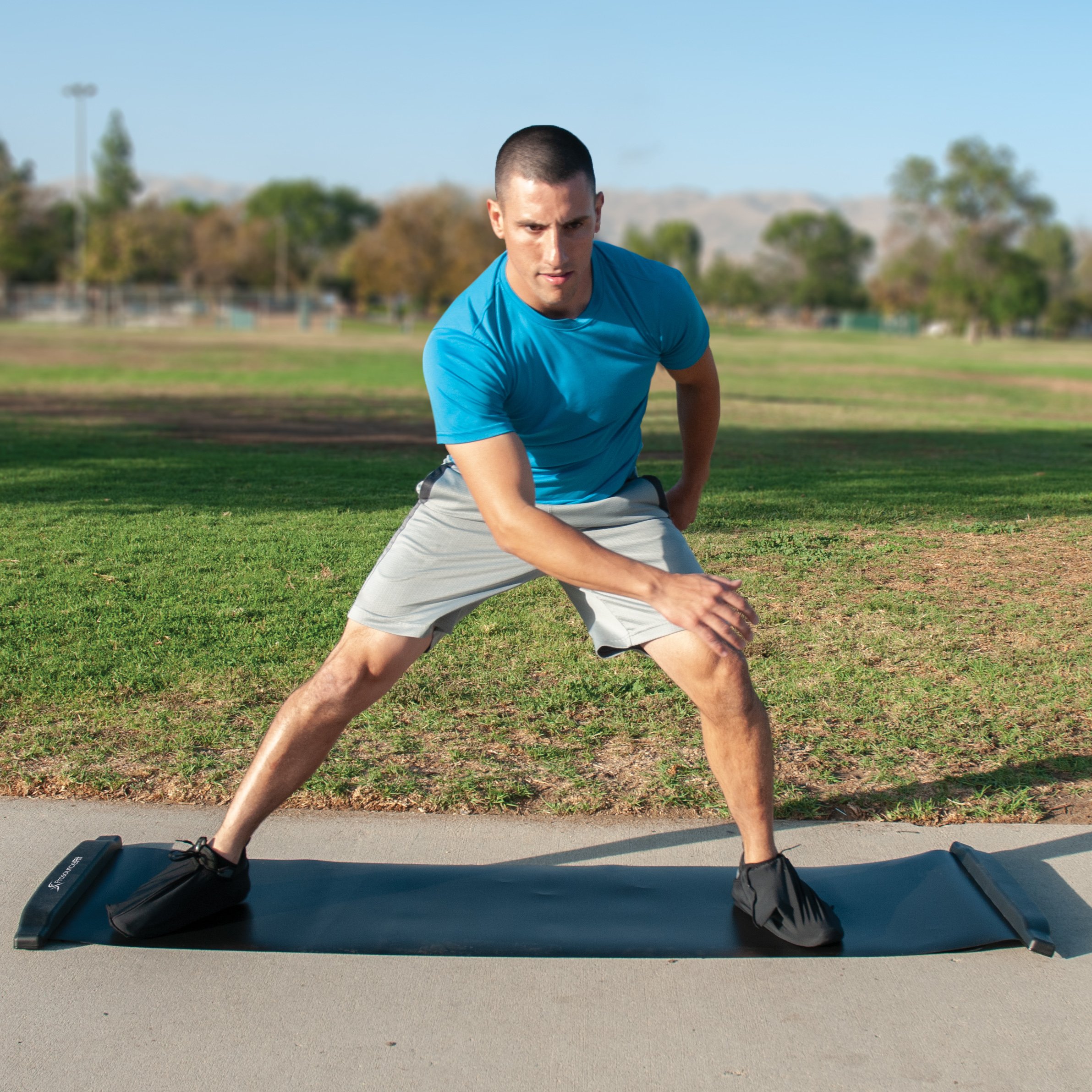 Slide into stellar shape with the ProsourceFit Slide Board for high intensity exercise! End stops help you to glide quickly and maintain momentum for a great cardio and lower body workout that’s also low impact! Whether you’re training for hockey, baseball, recovering after an injury, or just want a good cardio slide board workout you can do at home, this fitness mat can help you reach your goals. At 6-feet long, it’s great for a variety of users, ages and athletic purposes. This lightweight gliding mat comes with free booties and a mesh carrying bag for easy storage and portability. You can move both laterally as well as forward and backward to train your muscles in multiple planes of motion. But don’t stop at just sliding! The Lycra booties and slick surface are an excellent way to perform lunges, mountain climbers, sliding push-ups and more. Put the booties on your hands or feet to enhance your stability and strength as you glide through your usual exercises. By keeping your feet connected to the floor, rather than stepping or jumping between movements, you’ll challenge your muscles in new ways so you keep seeing results. The closed-chain exercises are great for physical therapy, opening up tight hips and reducing knee pain. Strengthens hip stabilizers, which can help reduce common overuse injuries like knee pain and prevent future injuries due to weak hips. The textured non-slip PVC bottom prevents sliding when the mat is on hard floors and can also be used on carpet. It’s perfect for homes, gyms, training studios and rehab facilities. It can be easily rolled up and stored in the carry bag so you can take your slide board training on the road, or just keep your space clean when it’s not in use. If you need to increase the slickness of the sliding surface, simply spray with silicon spray to keep it in top condition.