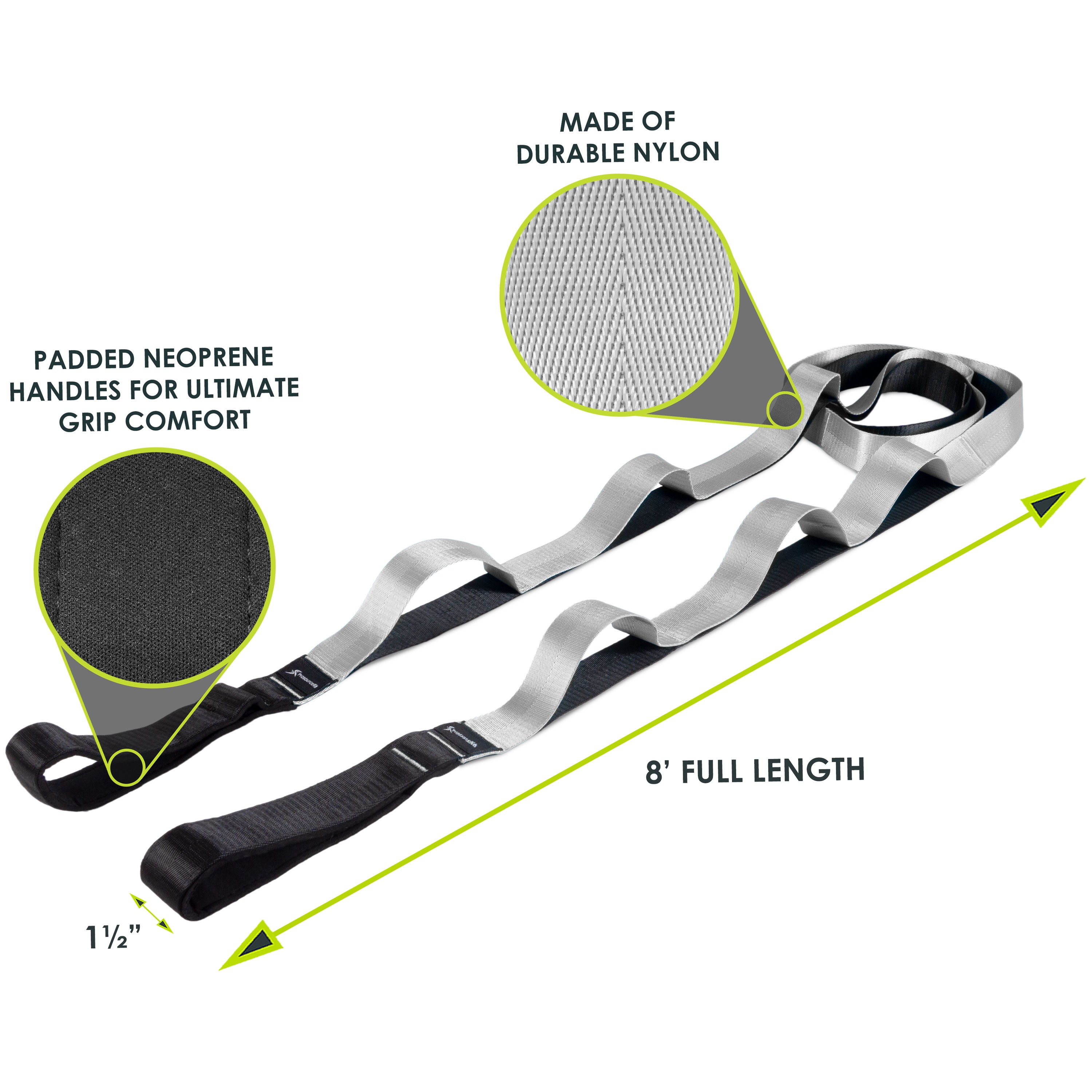 Get a different stretching experience with the ProsourceFit Multi-Loop Stretching Strap. Designed for all fitness levels, the 12 loops make it easy to adjust and feel what length is right for you, ensuring you don’t overstretch. Not to be confused with yoga straps that don’t have loops, this stretch out strap won’t change shape or fray! Made of strong stitched nylon, you can now get stronger and more stable support when you need it the most. Work your way up or down the strap as your flexibility increases or simply need to adjust during physical therapy for the ideal release every time. For added comfort, neoprene padded handles won’t dig into your palms, especially when you are releasing tight problem areas. Each strap comes with its own carrying case for portability, so it’s easy to maintain and offers quick stretches anywhere. Ideal for incorporating into your regular warm-up or cool down routines, yoga, Pilates, dance, gymnastics and more!