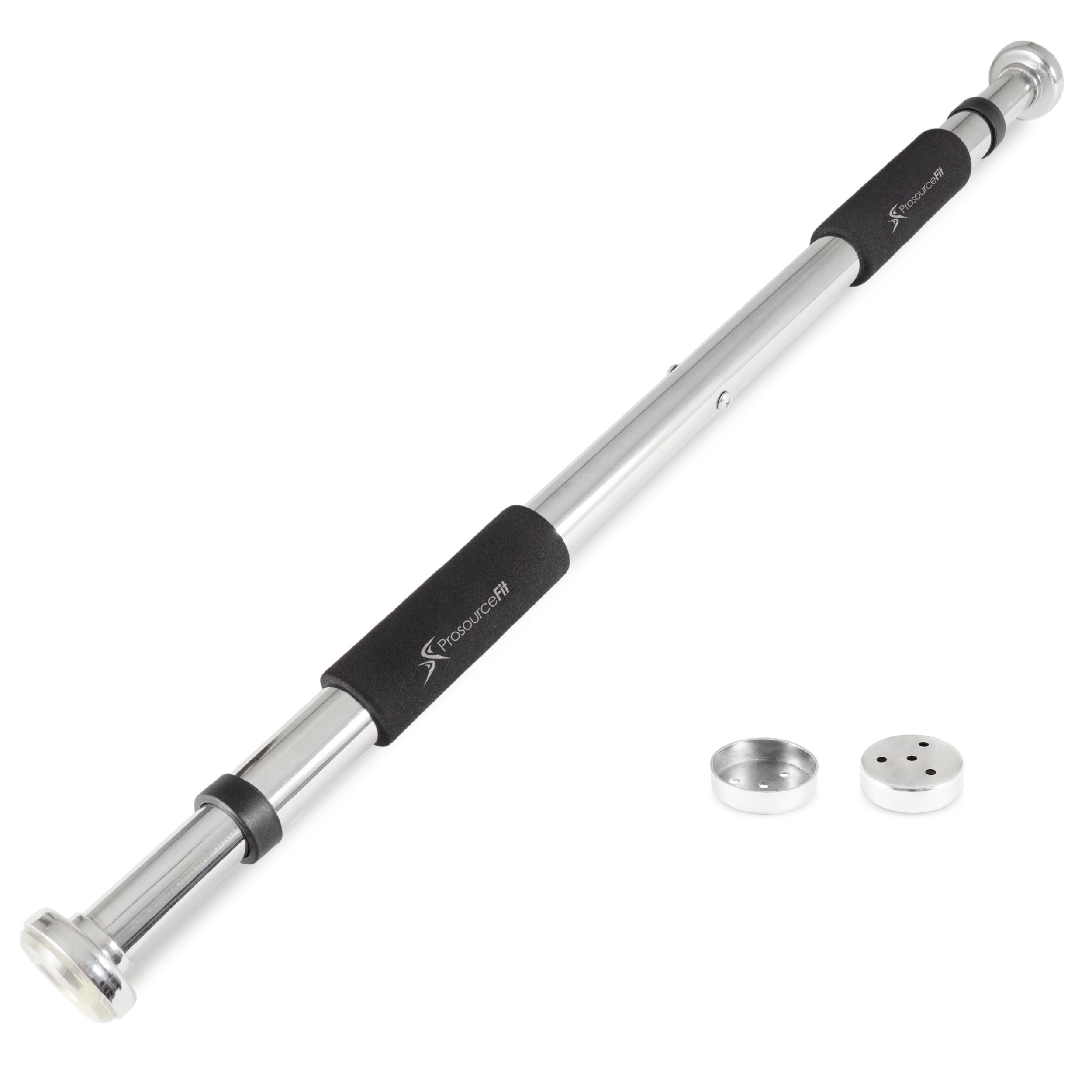 The ProsourceFit Doorway Pull-Up Bar builds your upper body muscles faster with convenience. The adjustable bar can be installed in any doorway at home between 24” and 39” for use at any time. It’s perfect for squeezing in quick workouts and improving upper body strength with pull-ups and chin-ups. The heavy-duty steel workout bar holds up to 220 pounds for pull-ups, chin-ups and leg raises. You can also place it lower in the doorframe for triceps dips, push-ups and as an anchor for floor crunches. Cushioned foam grips prevent slipping and are comfortable for hands. It comes with all mounting hardware so you can get it installed quickly for immediate use.