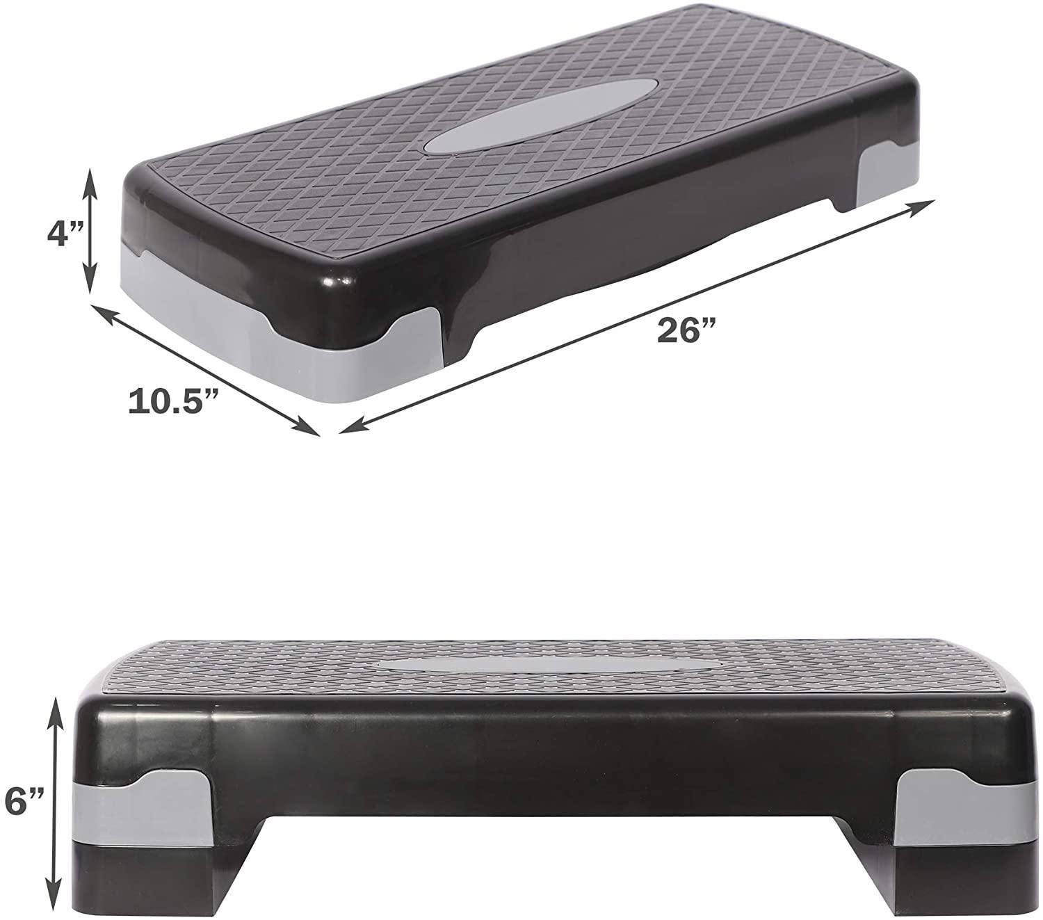 Home and gym step platform nonslip top and supports up to 280 lbs.2 Levels for 4" and 6" adjustable height. Pad size is 10.5" x 26".Non-slip surface can prevent slipping; safe and useful.Multifunction step flatform assist you with various body movements and exercises.Light weight and easy carry; you can take the step tool to anywhere.Spceification: