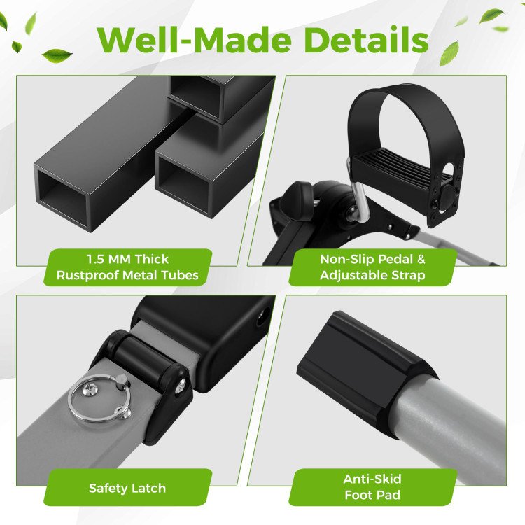 -Easy to fold for storage: pull out the safety latch to fold the leg