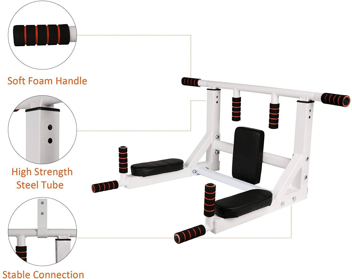 Attention: Concrete brick/ solid cement wall/plywood is suggested for mounting this pull up bar and dip station. You'd better not install the product on hollow brick wall/ honeycomb brick wall /drywall.Specification: