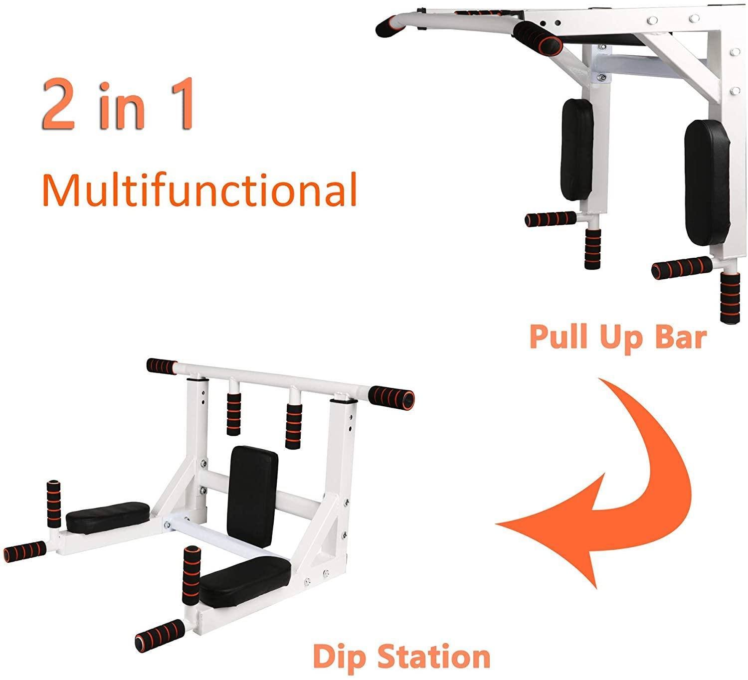 2 in 1 Multifunctional Wall Mounted Pull Up Bar-Ideal for Fitness Enthusiast:Allow for a variety of angles to workouts.Perfect for exercising your backs; shoulder; chest; arms; triceps; biceps; lats; and the front of your abs.Offer countless possibilities for your exercises.Can be used with punch bags power ropes or yoga straps resistance bands; yoga ropes(not included).2 in 1 Multifunctional Wall Mounted Pull Up Bar.You can install this mounted pull up bar in the room; home or commercial gym. The equipment can be removed when not in use.Scientific Wide distance(27/17 inches). Avoid rubbing against walls ; enjoy your exercise time.