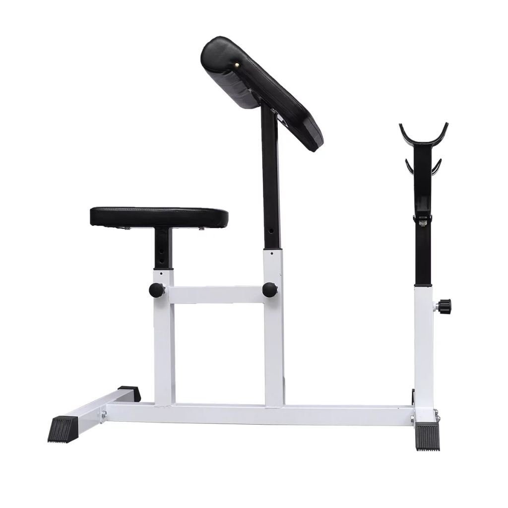 The seat, arm curl cushion and bar support are set with 4 or 5 adjustable knobs, and the height adjust in seconds to ensure that you have a safe and satisfying workout